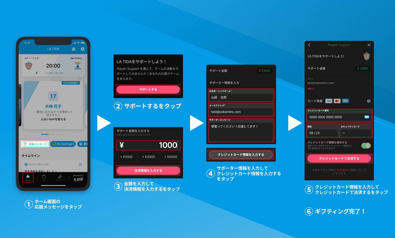 ※サポートの際に、返礼品の画像や動画についてはご希望の選手の名前を記入してただくようお願いします。