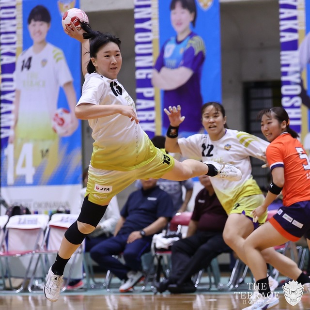 試合開始2分がすぎたところで相手に2連続得点を許してしまうも、No.14當山のカットインからの得点でシーソーゲームとなる。テラスのミスがある中ノーマークシュートが飛んでいくもNo.1桑原の好セーブにより流れがどちらにも行かない展開となる。相手の退場している時間に得点が取れず追いつくことができなかったが、なんとかくらいつき前半を10-12で折り返す。